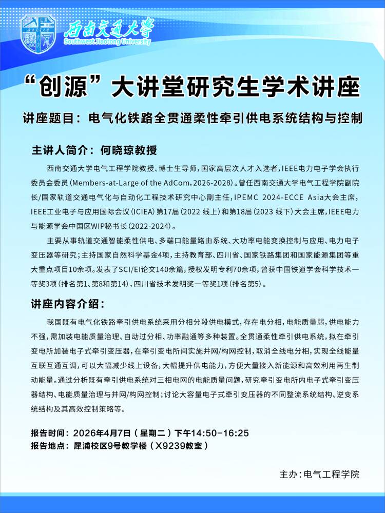 03-17【 本科生教育】关于公示2025-2026学年春季学期"高速铁路牵引供电与电力传动"微专业拟录取本科生名单的通知