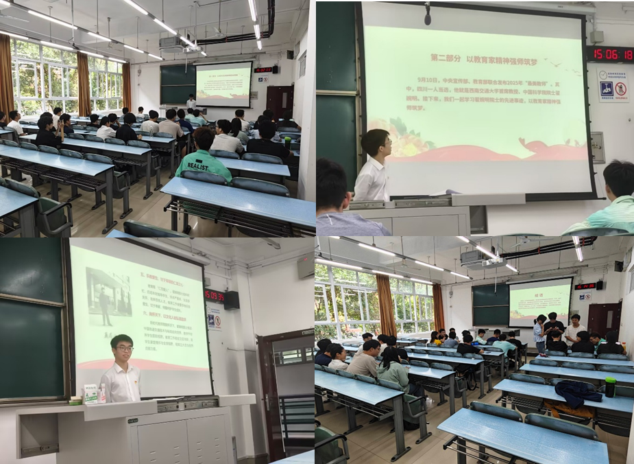2025年9月18日,569vip威尼斯游戏电气本科2023级党支部在X2227教室组织开展“以伟大抗战精神固本铸魂,以教育家精神扬帆筑梦”主题党日活动。活动结合中国人民抗日战争暨世界反法西斯战争胜利80周年纪念节点与教师节契机,引导学生党员深刻感悟伟大抗战精神、学习教育家先进典范,进一步强化使命担当意识。
