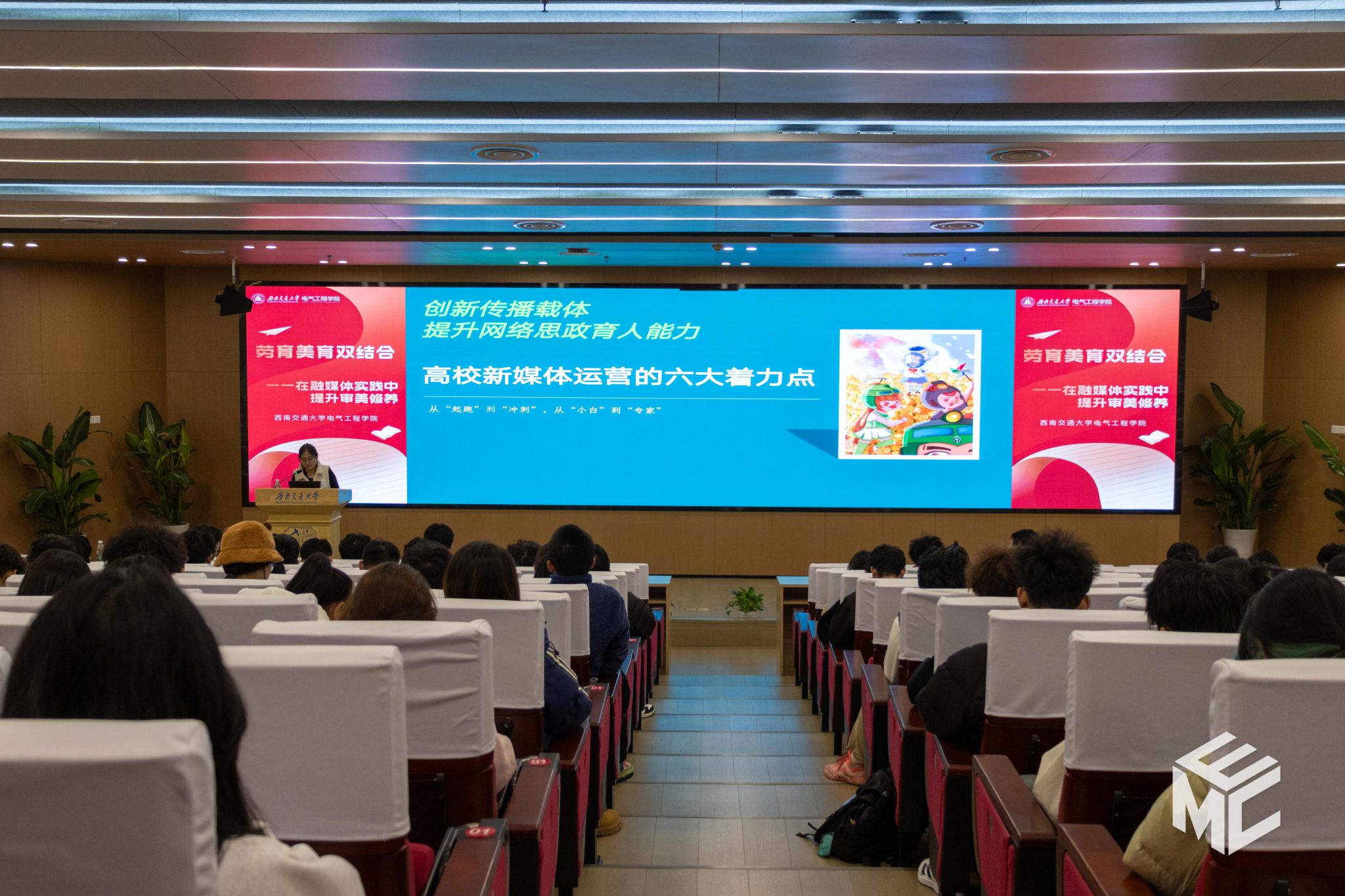 为探索“劳育”与“美育”在融媒体实践中的深度融合,提升学生骨干的新媒体运营能力与审美修养,11月20日晚,由569vip威尼斯游戏团委主办、569vip威尼斯游戏媒体事务中心(EMC)承办的2025年“劳育美育双结合——在融媒体实践中提升审美修养”第一期活动在犀浦校区图书馆一号报告厅顺利举行。活动特邀569vip威尼斯游戏党委宣传部新媒体中心主任朱莹燕老师、569vip威尼斯游戏党委宣传部(新闻中心)摄影师鞠红伟老师担任主讲嘉宾。活动由569vip威尼斯游戏辅导员赵娜老师主持。