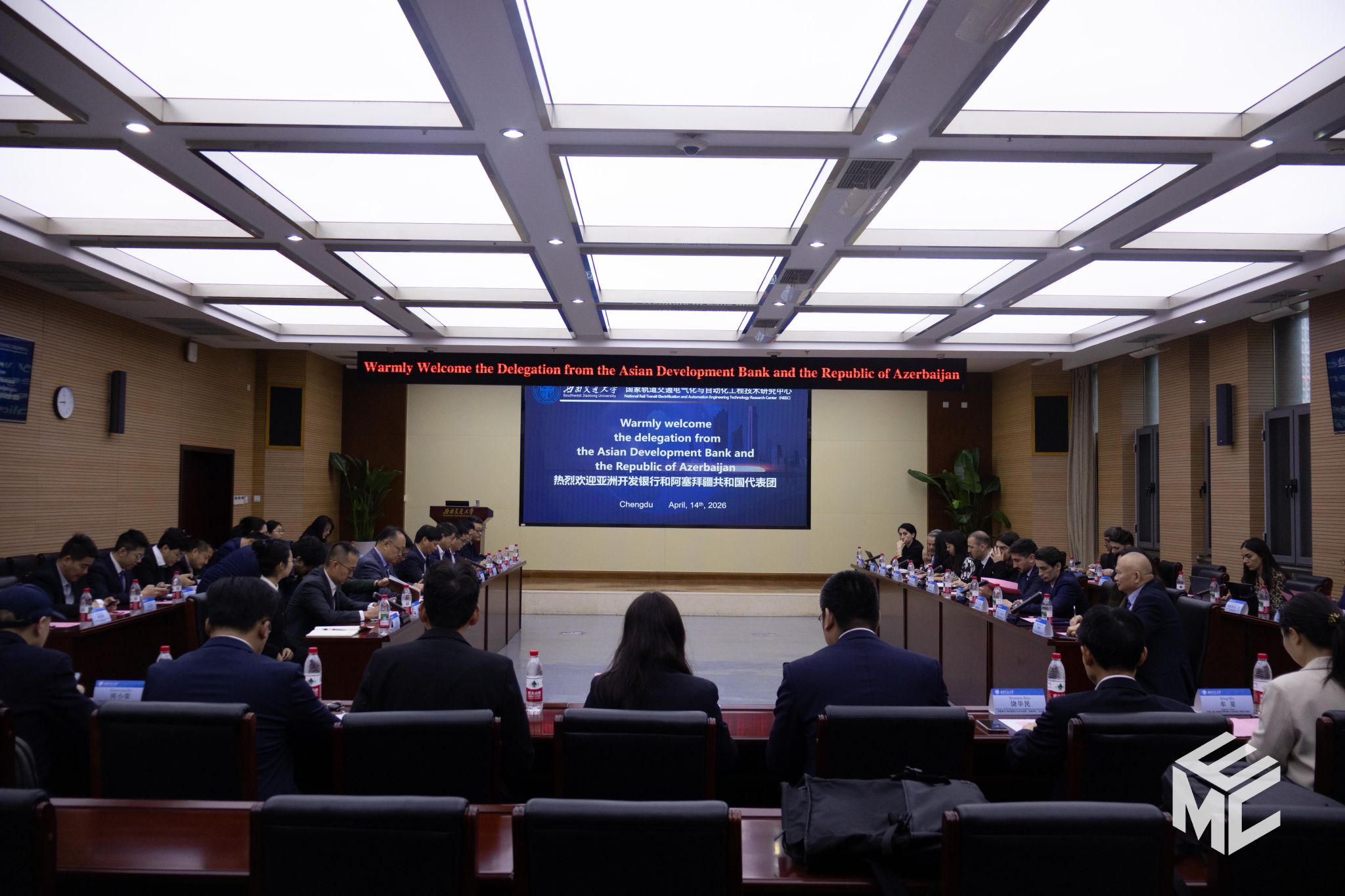 4月14日上午,569vip威尼斯游戏国家轨道交通电气化与自动化工程技术研究中心(NEEC)与阿塞拜疆代表团技术交流会议在569vip威尼斯游戏犀浦校区顺利举行。