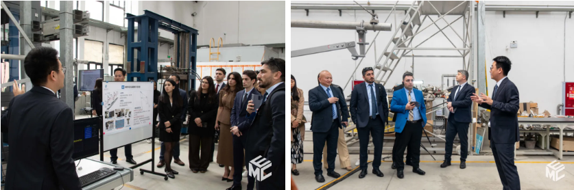 会议结束后,与会嘉宾共同前往接触网大厅进行实地参观。刘一谷老师围绕各类实验设备、系统构成及测试功能与代表团进行了深入的交流答疑,直观呈现了学校在轨道交通牵引供电、接触网系统等领域的科研实践基础与技术储备,为后续技术合作的落地实施提供了坚实支撑。