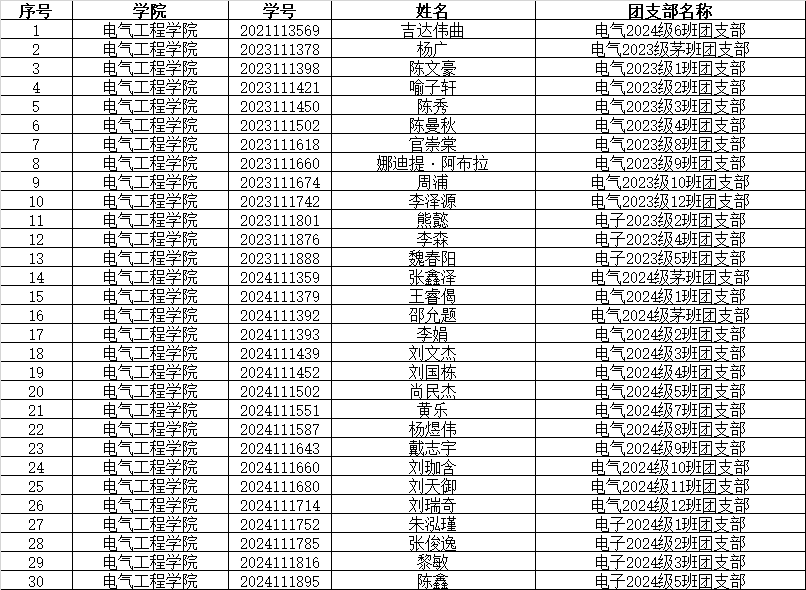 根据校团委关于发展团员工作的相关通知要求,参照《中国共产主义青年团章程》、《中国共产主义青年团发展团员工作细则》(中青发〔2023〕13号)文件,经本人申请,团支部教育、培养和考察,团支部综合评价与民主推荐及学院团委预审,拟确定以下30名同学为团员发展对象,现将名单予以公示。